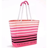 Victoria's Secret 2017 Limited Edition Pink Striped Canvas Beach Tote Bag NEW