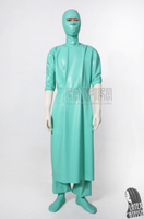 100% Latex Rubber Light Blue Hood Gloves Sock Long Nurse uniform Cosplay Zipper