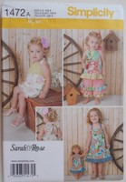 Simplicity Sewing Pattern 1472 Toddlers' Romper, Dress, Top & Pant in Size 1/2-4