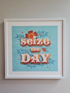 Digital erstellter Schriftzug SEIZE THE DAY NUTZE DEN TAG, Motivation Kunstdruck