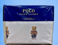 Polo Ralph Lauren Male Polo Bear Full Sheet Set In Blue Oxford Stripe Boy’s New