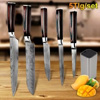 5 tlg Küchenmesser Kochmesser Set Japanisches Damaskus Edelstahl Profi Messer DE
