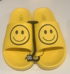 Neu Damen-Sandalen gelb Smile Emoji Smiley-Gesicht bequeme Slipper Größe 9