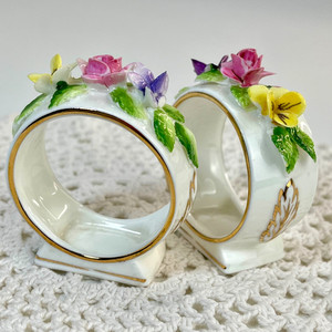 Royal Adderley Bone China Floral Serviettenringe England Vintage Porzellan Paar