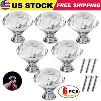 6Pcs Diamond Clear Crystal Dresser Knobs Drawer Pulls Handles Cabinet Door USA
