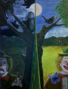 Der lachende u der weinende Clown originales Acrylgemälde Unikat Siehst Du Dich?