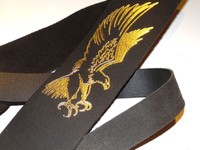Guitar Strap 100% Leather Acoustic Electric Embossed Gold Eagle on Black Strap