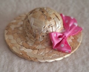 Miniatur - Strohhütchen für ca. 10 - 12 cm Bär oder Puppe, Unikat, *gelibären*