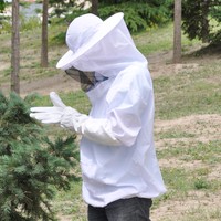 Protective Bee Keeping Jacket Veil Suit Smock & Beekeeping Long Sleeve Gloves