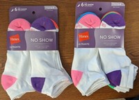 LOT OF 2 HANES ULTIMATE 6 PACK NO SHOW WOMENS SOCKS SIZE 5-9 *12 Pairs Total*