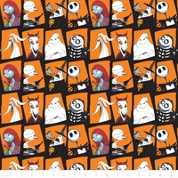 Nightmare Before Christmas Character Blocks Orange Cotton fabric by the yard
