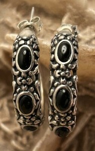 Carolyn Pollock Creolen Sterlingsilber schwarzer Achat mit drei Steinen