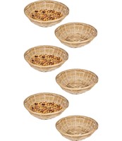 Set Of 6 Vintage Round Natural Bamboo Wicker Bread Basket Storage Hamper Trays