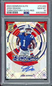 2023 Donruss Elite Josh Downs Turn Of Century RED PRIZM AUTO #/49 PSA 10 POP 1
