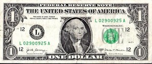 $1 6 Digit Radar Banknote: #1-L02900925A - *REDUCED!!!