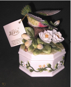 LaVie Porcelain Hummingbird Trinket Box - #03307 - Vintage