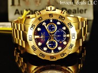 Invicta Men's 50mm Pro Diver Chronograph Blue Dial Gold Tone SS Watch