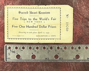Vintage 1939 Raffle Ticket to the World's Fair in NY; Used