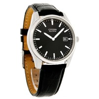Citizen Eco-Drive Mens Stainless Steel Black Leather Strap Watch AU1040-08E