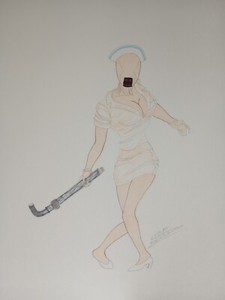 Bubble Head Krankenschwester 11x14 ORIGINAL FARBILLUSTRATION von Luke Kororolowicz