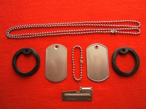 US Militär/Pfadfinder Erkennungsmarken Set P-38, Schalldämpfer, Kette, 2 Blanko Tags personalisieren EUR 10,34