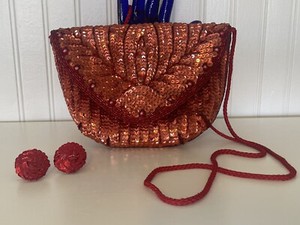 Vintage Sequin and Beaded Shoulder Bag & Earrings