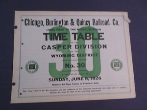 Chicago Burlington & Quincy CB&Q RR Casper Div. Mitarbeiterfahrplan #30 6.6.26 EUR 22,130 Gebote6T 9Std 7 Min