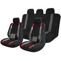 Car Seat Covers Black / Red & Grey 17pc Full w/Steering Wheel/Belt Pad/Head Rest