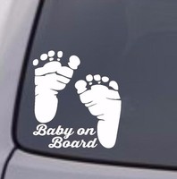 BABY ON BOARD Vinyl Decal Sticker Car Window Bumper Feet Foot Prints Cute White