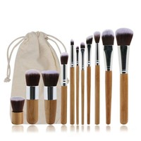 11 Pcs Bamboo Handle Cosmetic Makeup Brush Set Foundation Blush Soft Brushes Kit