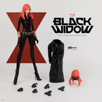 great stylized Black Widow Figure, taller than 12”, the outfit is really nice and is made in such a great way that it doesn’t hinder the articulation on the arms, the legs also have a great range of motion. She doesn’t actually have boots, it’s a high heel shoe glued to the outfit with straps also just attached. The hands change out easily too and have good sculpts. One negative is the outfit has random “dry brushing” on it which just looks out of place and is unnecessary. The face is is okay for what it is, the hair is softer plastic but still hinders articulation, the extra head is a waste to me, I’ll never use it. The coat is really really nice, but something that I’ll also never use. It’s a nice figure that I recommend especially if you can get it for under a hundred dollars.