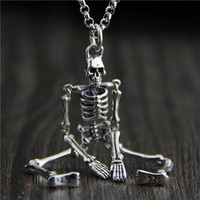 Vintage MENS 925 Sterling Silver Movable Skull Skeleton Gothic Biker Pendant