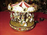 1 von 1 finden das hilfreich The details of the figures, both people and animals, are very good. The music tone is excellent, not tinny as is sometimes the case with music boxes. I like that there is seasonal and nonseasonal music so you could have it on display year-round. The power pak cord is nice and long for easy positioning of the carousel. It is painted bright and cheery colors and the lights and mirrors add to the sparkle.