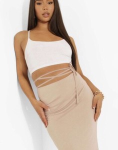 Boohoo Beige Maxirock mit Bindedetail Größe 12