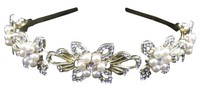 Womens Fashion Headband Gold Colored Pearl & Rhinestone Flower Floral Style NEW