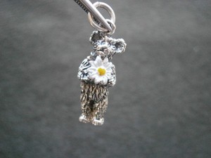 Shaggy Teddybär mit Gänseblümchen Vintage Sterlingsilber Armband Charm Anhänger 4,3 g