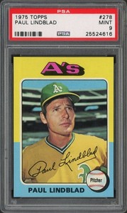 1975 Topps #278 Paul Lindblad Oakland A's PSA 9 MINT