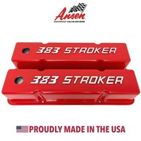 383 STROKER Chevy Valve Covers Red - SBC Tall Raised Logo - Ansen USA