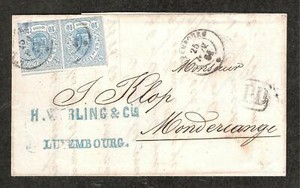 Luxembourg 1861 Brief von Luxembourg nach Mondercange (Luxembourg) mit Paar Nr.6
