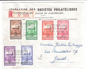 Luxembourg 1936 Ersttagssbrief FDC 11.FIP-Kongress, Satz 290-295 Einschreiben
