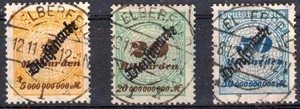 Deutsches Reich 1923 Dienstmarken 85 87 88 lesbar gestempelt in Elberfeld