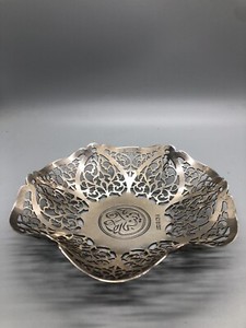 Antike La Pierre Sterlingsilber 59 g durchbohrte Schale Schale Spiralrand 5,75 Zoll