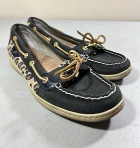 Sperry women's black leather animal print 9101882 boat shoes loafers size 10