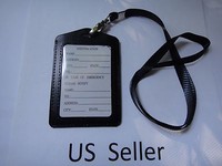 ID Card Holder Vertical strap Lanyard Genuine Leather for Retractable Badge USA